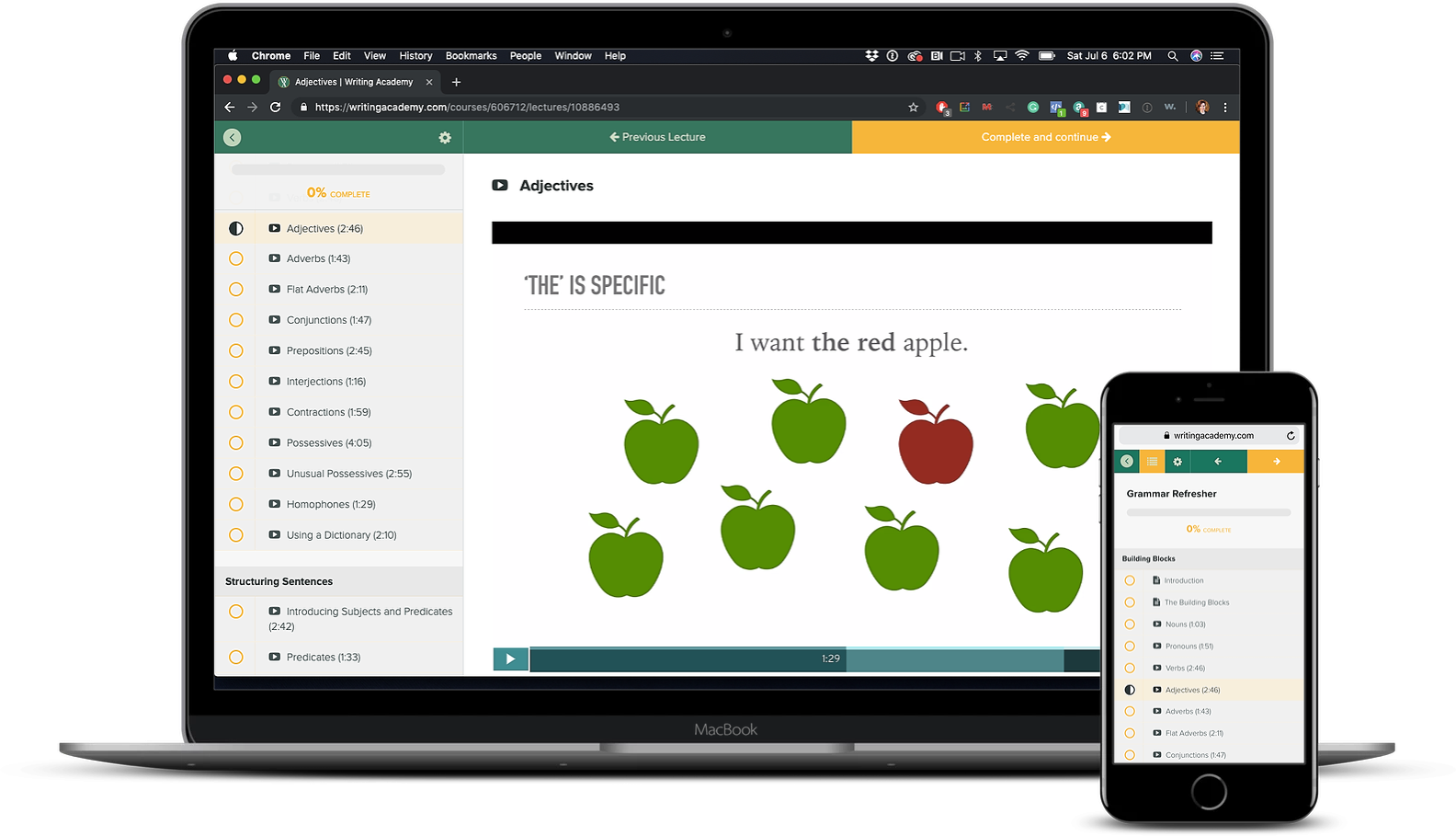 Each lesson features a video with detailed, actionable instruction about a specific topic.